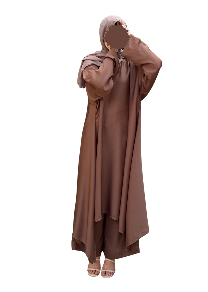 This abaya flows effortlessly with every step, offering both grace and ease. The relaxed silhouette features roomy sleeves with gathered elastic cuffs for a feminine touch, while the subtle hood detail adds a modern, casual flair.